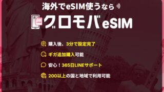 グロモバeSIMとはグロモバeSIMは、物理的なSIMカードを使わずにスマートフォンへ通信設定をダウンロードするだけで利用できる、次世代のモバイル通信サービスです。海外旅行や出張時でも、現地でSIMカードを購入する手間がなく、日本にいながら...